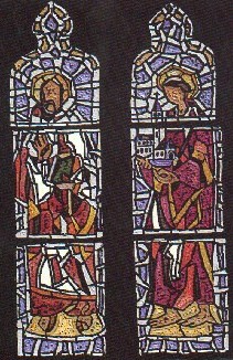 Projet du peintre Jacques Godin, réalisation confiée au maître verrier Charles Robert de Pluguffan, il représente Saint Guénolé faisant hommage à son maître Saint Budoc de l’ Abbaye de Landevennec dans une scène qui associe le ciel et la terre, des figures chrétiennes et des figures celtiques.