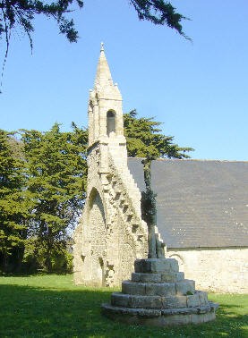 Si ce calvaire semble mal positionné dans l’enclos, c’est simplement parceque la chapelle actuelle n’est que le choeur de l’ancieienne église du Doyenné de Beuzec Cap Caval.Peut-être un jour pourrons nous en mettre au jour le sol et les fondations qui subsistent sous la pelouse