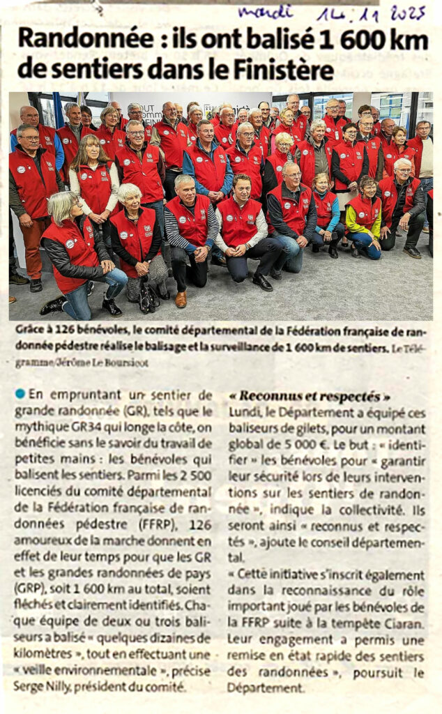 En empruntant un sentier de grande randonnée (GR), tels que le mythique GR34 qui longe la côte, on bénéficie sans le savoir du travail de petites mains : les bénévoles qui balisent les sentiers. Parmi les 2 500 licenciés du comité départemental de la Fédération française de randonnées pédestre (FFRP), 126 amoureux de la marche donnent en effet de leur temps pour que les GR et les grandes randonnées de pays (GRP), soit 1 600 km au total, soient fléchés et clairement identifiés. Chaque équipe de deux ou trois baliseurs a balisé « quelques dizaines de kilomètres », tout en effectuant une « veille environnementale », précise Serge Nilly, président du comité.